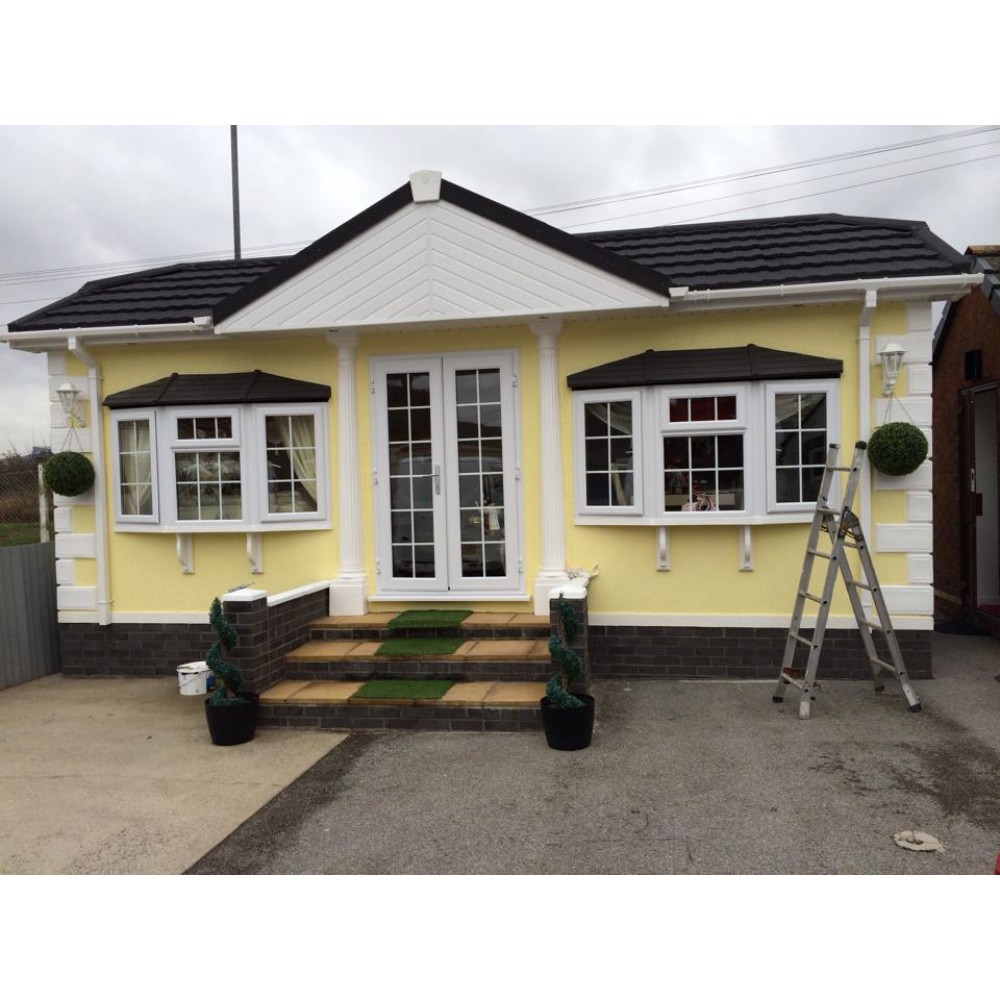 Our 6 foot GRP Globe bay window (fibreglass) is supplied in anthracite grey colour but can also be supplied in satin black or terracotta colour. The canopy is supplied as a one piece unit so is quick and easy to install. GRP is a maintenance free investment that will improve the look of you park, caravan, mobile home or lodge.