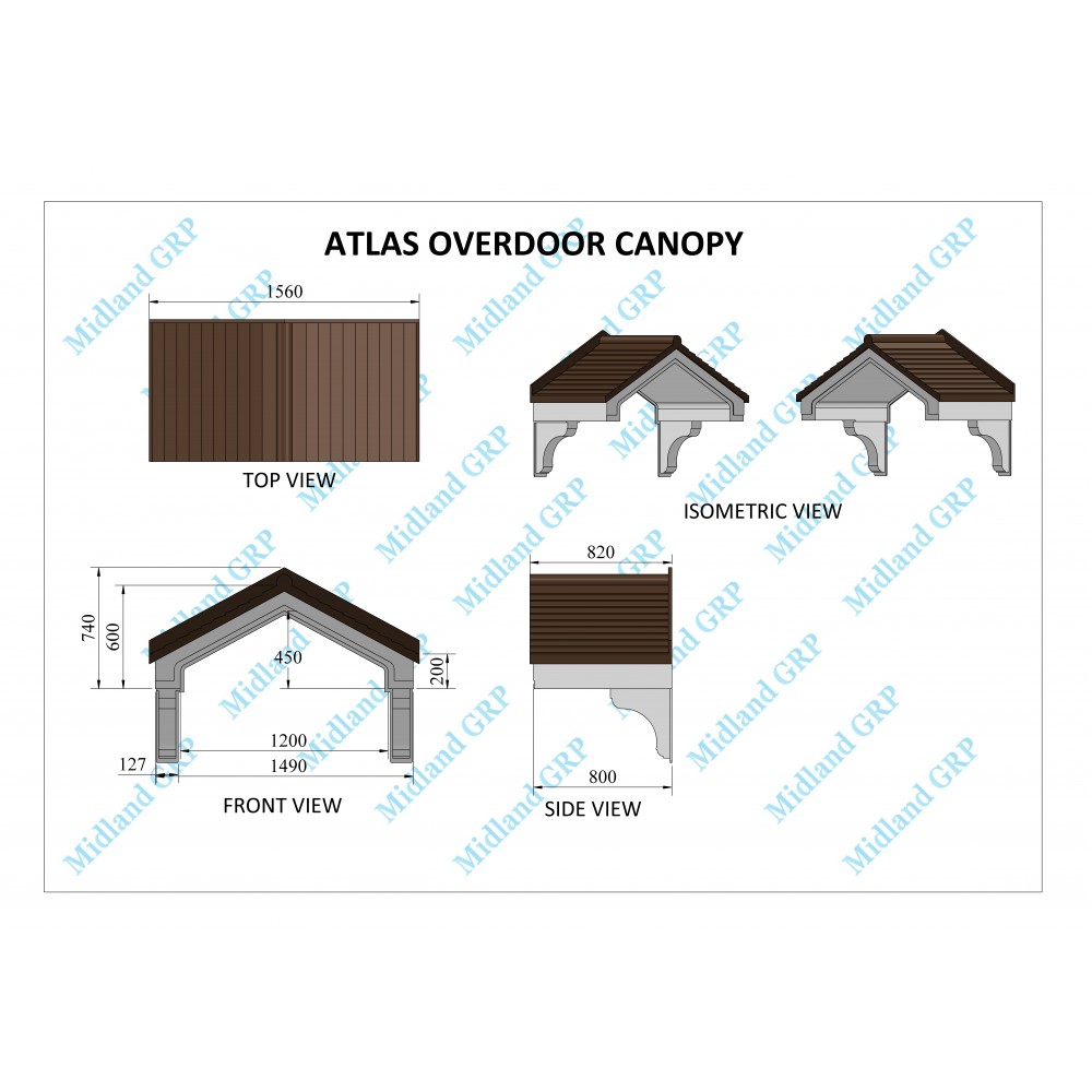 Milan GRP Over Door Canopy Made to Measure upto 2500mm width