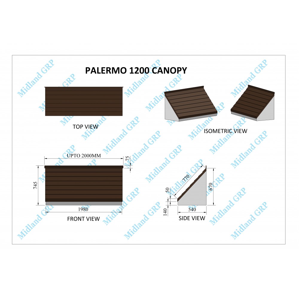 popular and modern Palermo 1200 Series GRP (fibreglass) window / porch door canopy can be