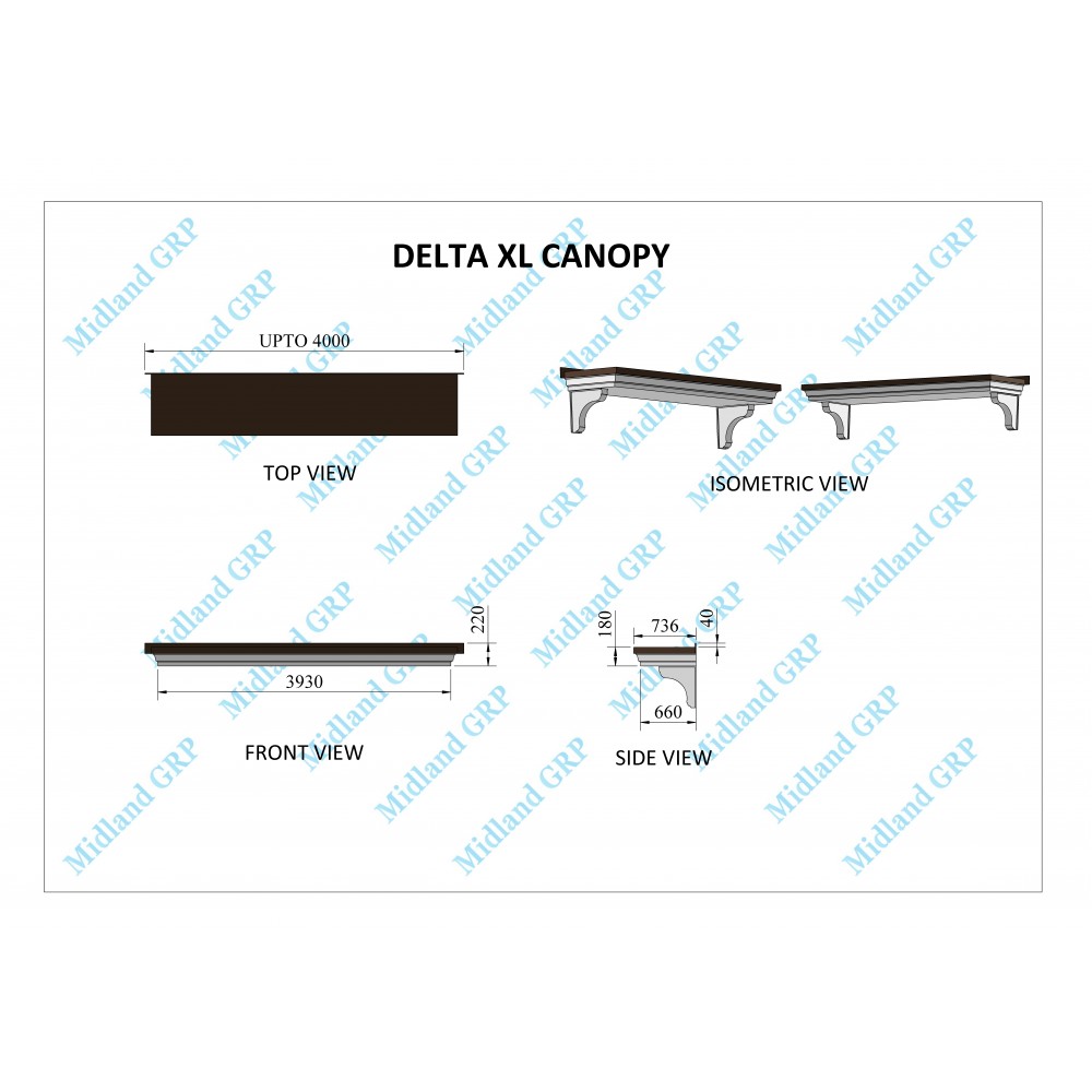 Delta XL Series Window / Overdoor Canopy - Made to Measure up to 4000 x 730mm